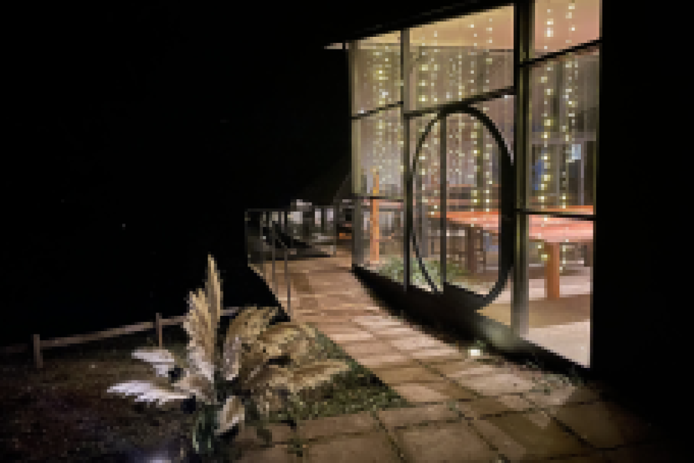 Illuminated pond creates a mesmerizing display of light and color offering a unique view for the guests of the tubes.