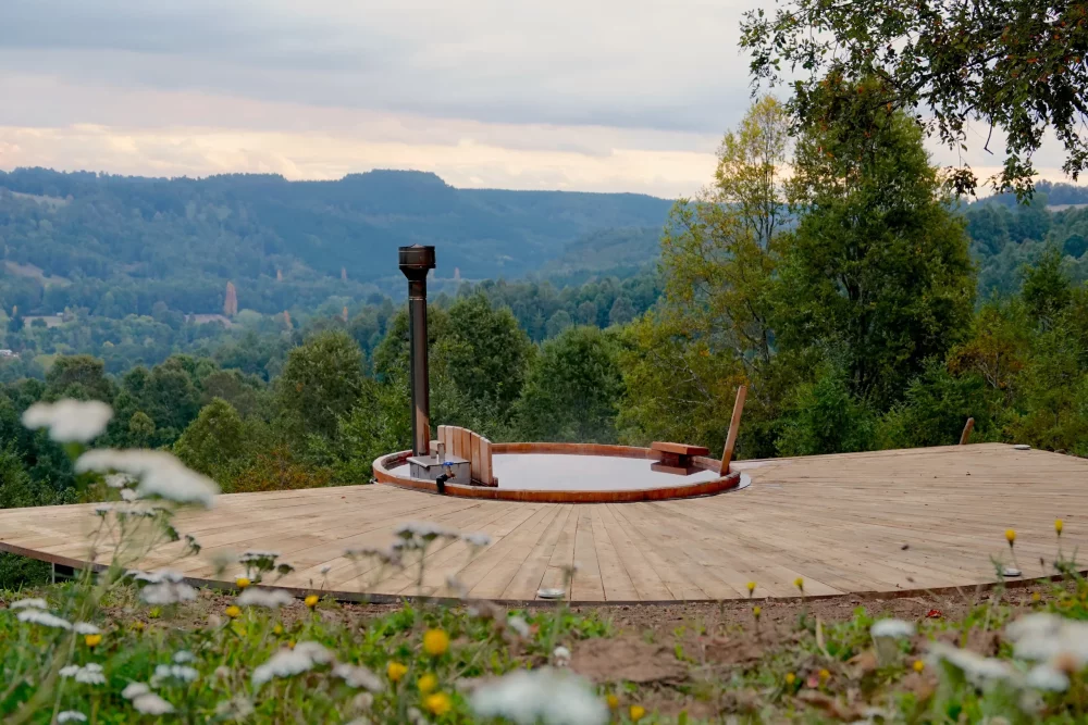 With an interior measuring 2m in height and 2.5m in length, guests can enjoy a comfortable stay with a queen-sized bed complemented by a traditional Japanese futon. The room is also equipped with electricity, an outlet, and a lamp, as well as ample storage space under the bed and in the side panel. Guests can also make use of the communal kitchen and outdoor area and the three communal bathrooms, each with a shower, toilet, and sink. You will also take part in a unique and natural bathing experience like never before in our outdoor bathtubs. Made out of natural materials and located discreetly on your private deck, guests can revitalize and reconnect with themselves in absolute serenity and seclusion.