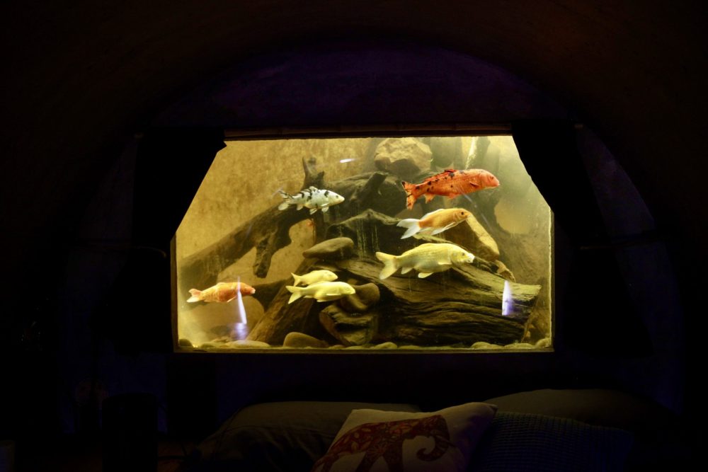 Three of the rooms boast a mesmerizing view of the koi pond through their rear window, affording guests an intimate glimpse of the graceful swimming fish and the singular pleasure of slumbering in close proximity to these magnificent creatures.
